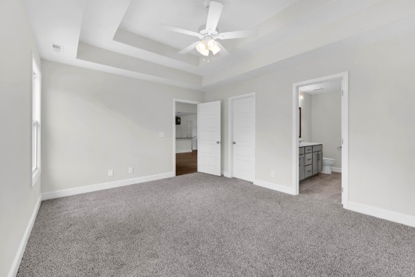 Welcome to the charming Roxy! This 3 bedroom ranch features 10 ft ceiling in main living area. In the kitchen, enjoy an oversized island, upgraded countertops and a pantry. Primary suite offers a designer showcase double tile shower and a spacious walk-in closet. Step out onto the covered outdoor space, ideal for relaxing and entertaining!
