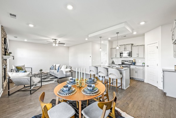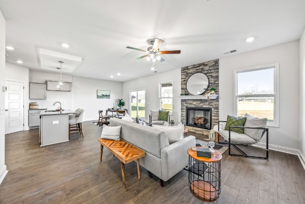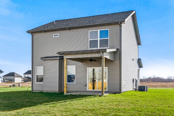NO REAR NEIGHBORS - OPEN SPACE! Seller offering $15,000 towards buyer incentives! Discover this exclusive floor plan, perfectly situated in a peaceful country setting. The main level offers a bright, open-concept layout, featuring a beautifully designed kitchen with granite countertops, custom cabinetry, and a spacious pantry. Upstairs, you'll find all bedrooms, including a conveniently located laundry room. The primary suite is a true retreat with a tray ceiling, a luxurious bath featuring a tiled shower, extended counter space, and a generous walk-in closet. Step outside to your covered outdoor living space, complete with a ceiling fan—ideal for relaxing or entertaining. *Photos are of previous build - colors, features, selections, upgrades, layout, etc may vary!