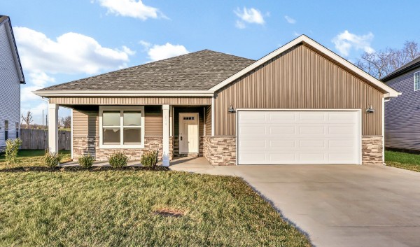 This 3 bedroom ranch features 10 ft ceiling in main living area. In the kitchen, enjoy an oversized island, upgraded countertops and a pantry. Primary suite offers a designer showcase double tile shower and a spacious walk-in closet. Step out onto the covered outdoor space, ideal for relaxing and entertaining!